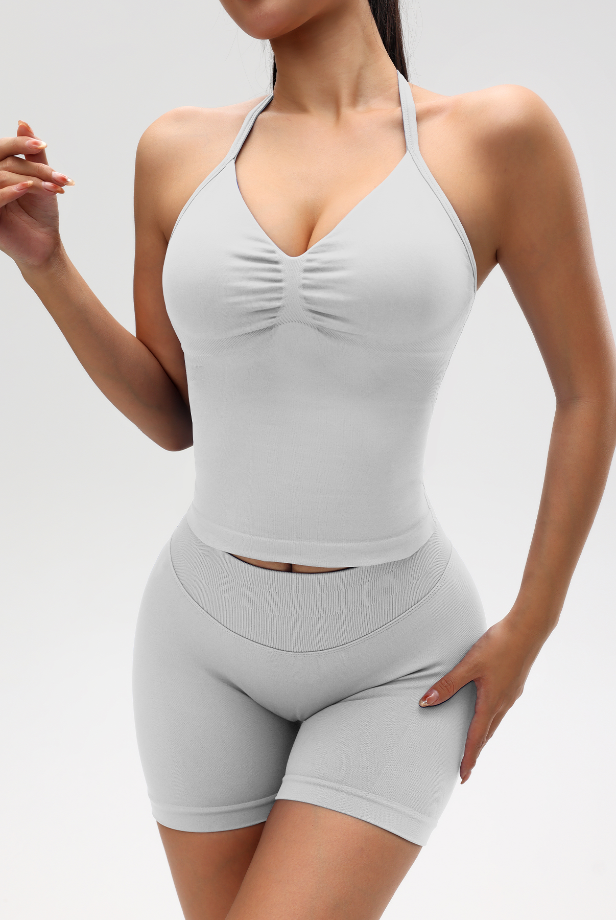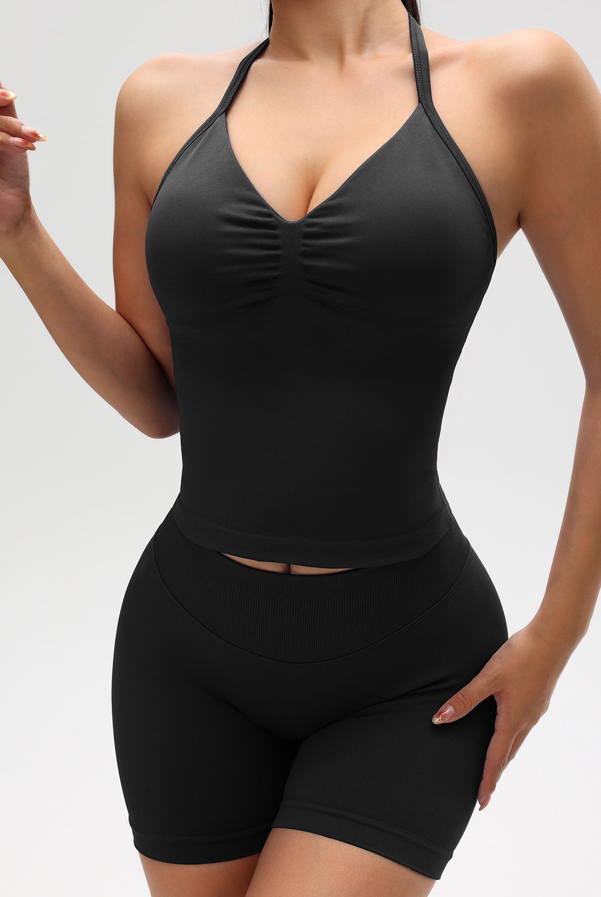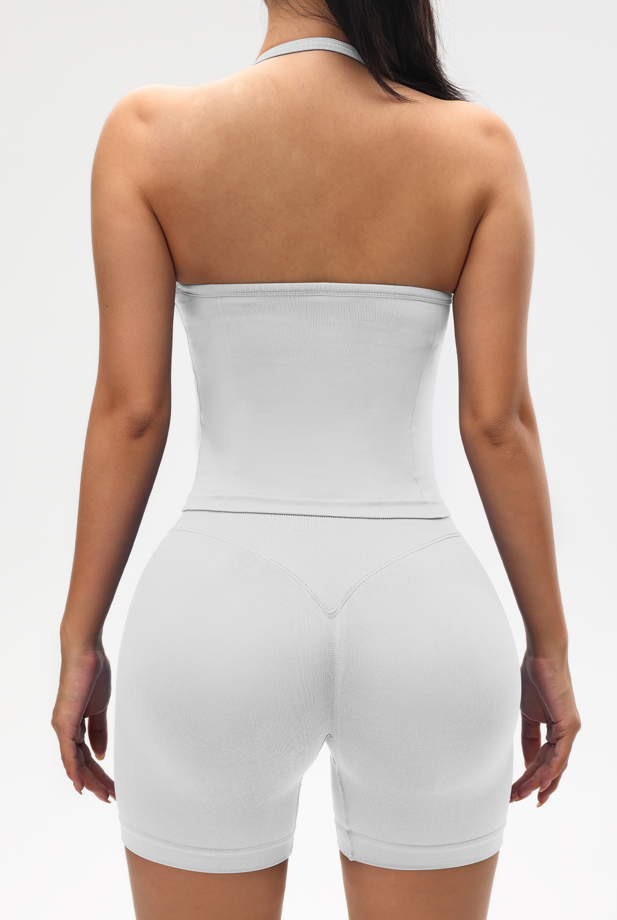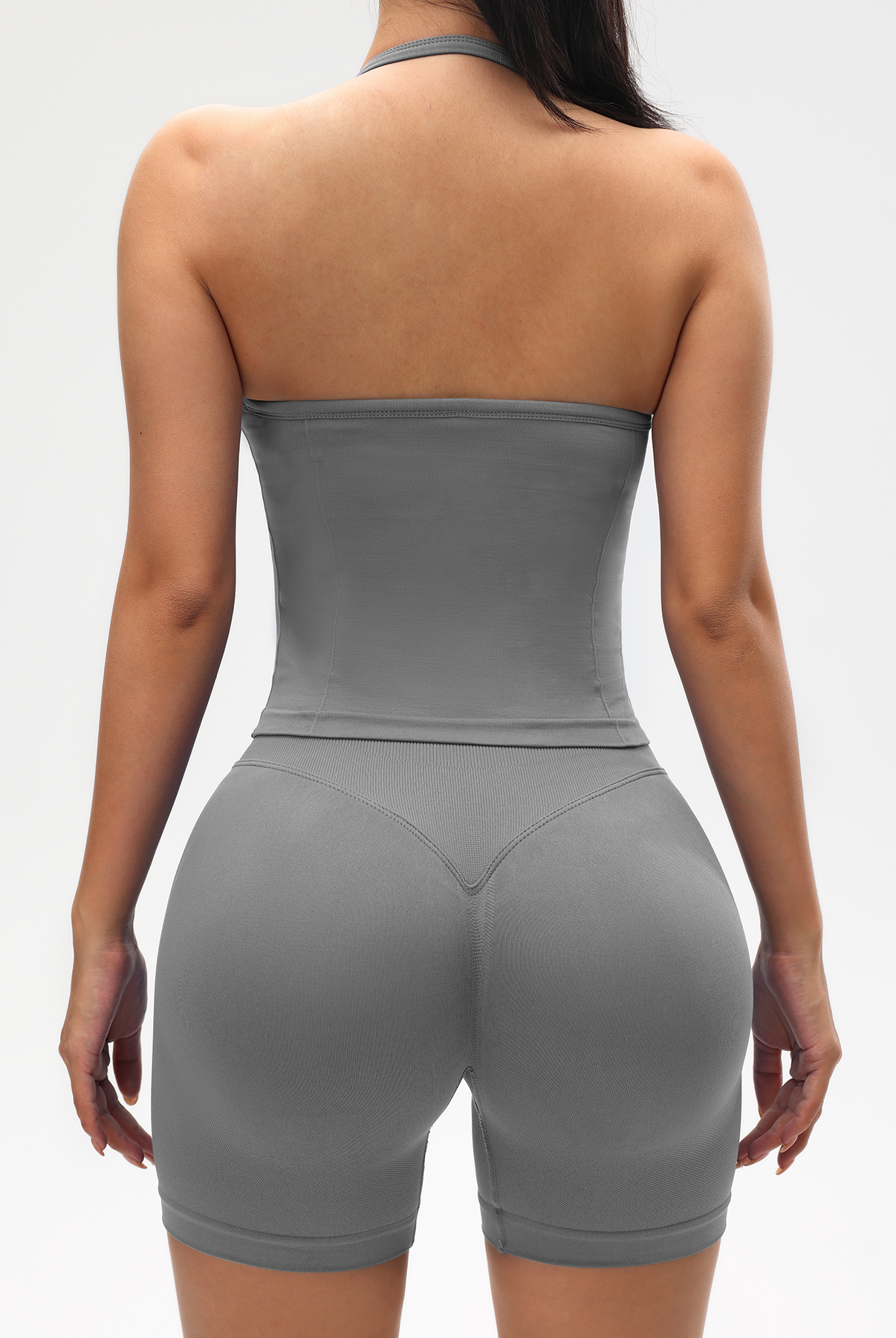 Ribbed Tummy Control Solid Color sleeveless shorts Womens jumpsuit